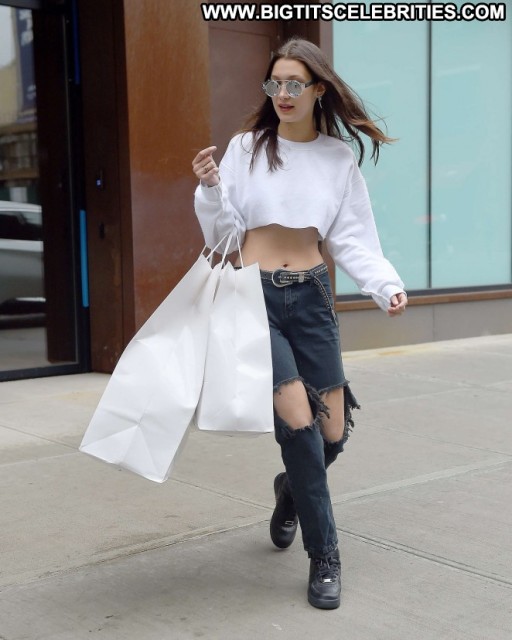Bella Hadid New York Celebrity Beautiful Babe Posing Hot Paparazzi Jeans New York